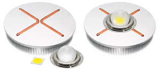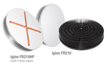 Both the Igloo FR210 and Igloo FR210HP are suitable for 80W applications. The Igloo FR210HP differs from the Igloo FR210 in that it optimized for CoB and spotlight applications. These modules' heatsinks are available in two color options silver and black.