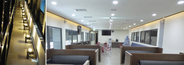 Finally, the softer brightness of the GL-DL06-IP Down Light was selected for the customer lounge and restrooms; the GL-DL06-SM was chosen for the storage room.