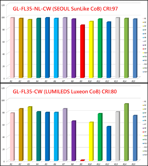 | The natural sunlight GL-FL35-NL series can improve the light experience for human health benefits. It closely matches the spectrum of natural sunlight and harmonizes light output with natural circadian rhythms. The GL-FL35-NL is suitable use in the museum, art gallery and indoor plant wall. |