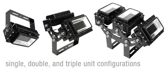 Besides the standard single unit kit, double and triple unit kits are available. These feature dual or triple mount brackets suitable for lighting towers to create up to 300W of LED lighting power. |