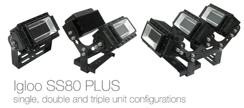 The Igloo SS80 PLUS is available in various configurations supporting single, double and triple LED units. The double mounting bracket provides a solid base for multiple LEDs with flexible multi-angle adjustability. In triple unit configuration, the Igloo SS80 PLUS offers a range of user-adjustable illumination angles and can easily adapt to changing lighting scenarios in future, with LED technology’s proven cost reductions and energy-saving advantages.