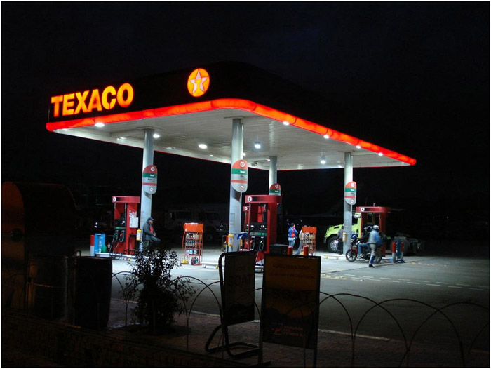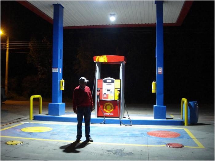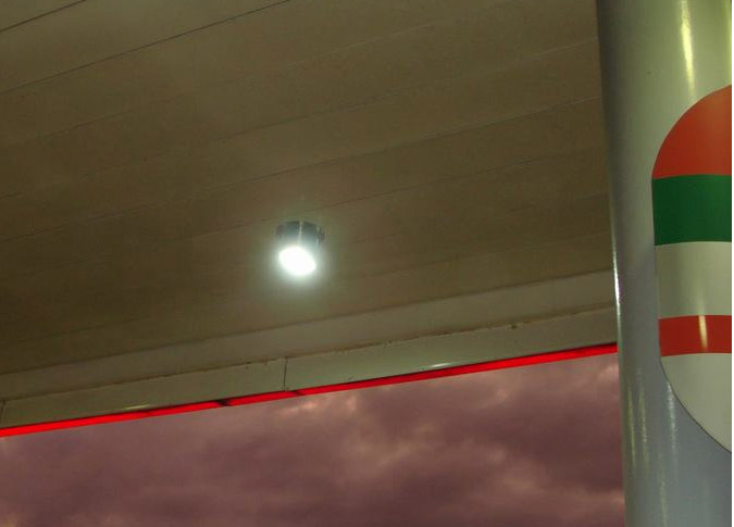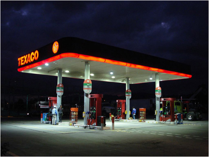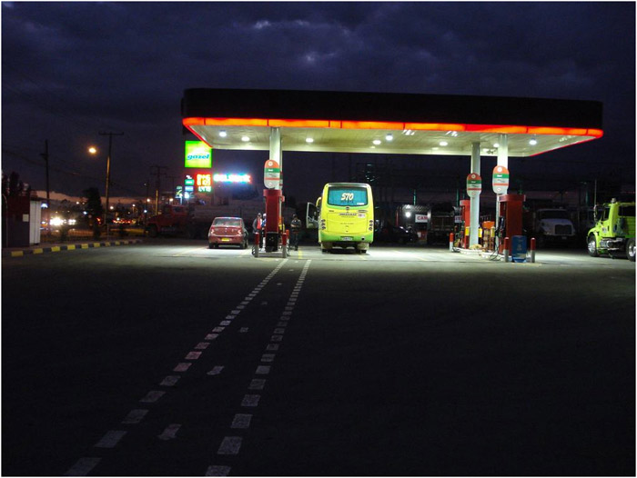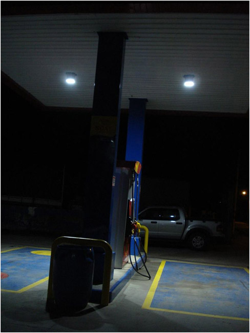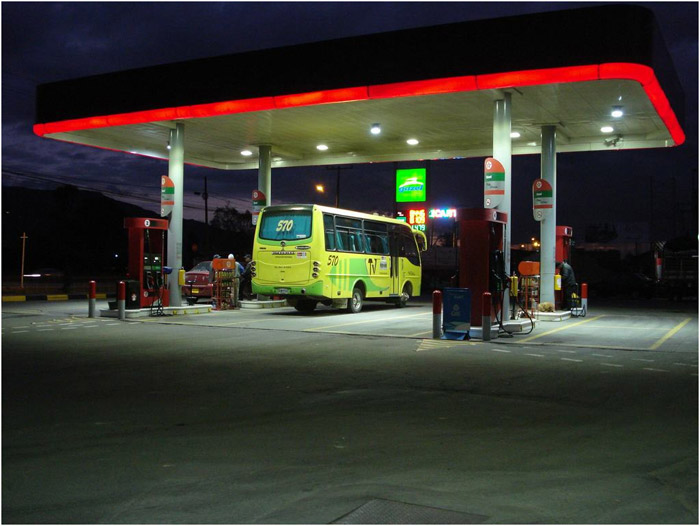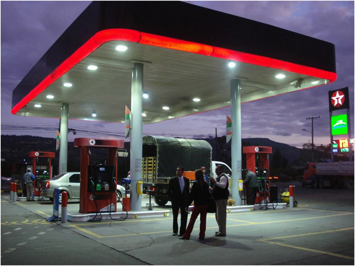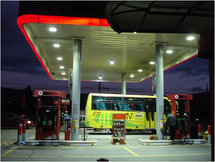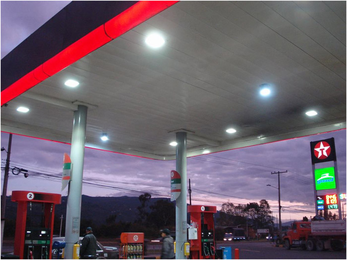 GlacialLight LED bay light installed at gas stations (Bogota city).