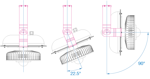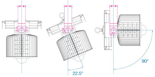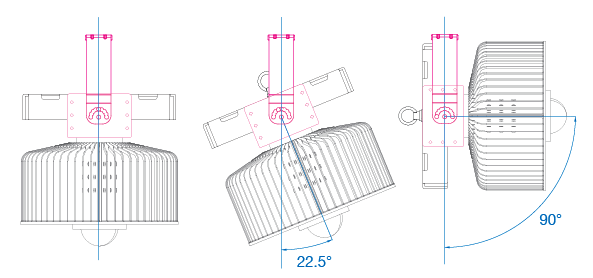 | The bracket has a maximum adjustment angle of 180 degrees and can be adjusted into 8 different positions, each one 22.5 degrees apart. |
