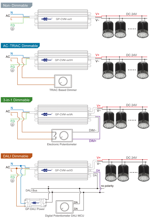 Can be dimmable with given the appropriate DC electrical signal (typ. PWM) .