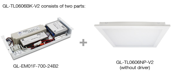 GL-TL0606BK-V2 available in Emergency light version with GL-EM01F-700-24B2 pre-installed.